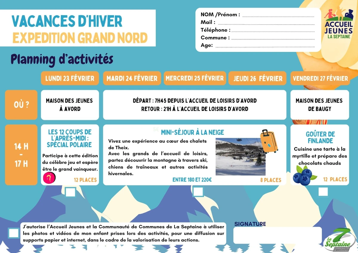 Les accueils Jeunes et de Loisirs de La Septaine vous proposent pour les vacances d'hiver :